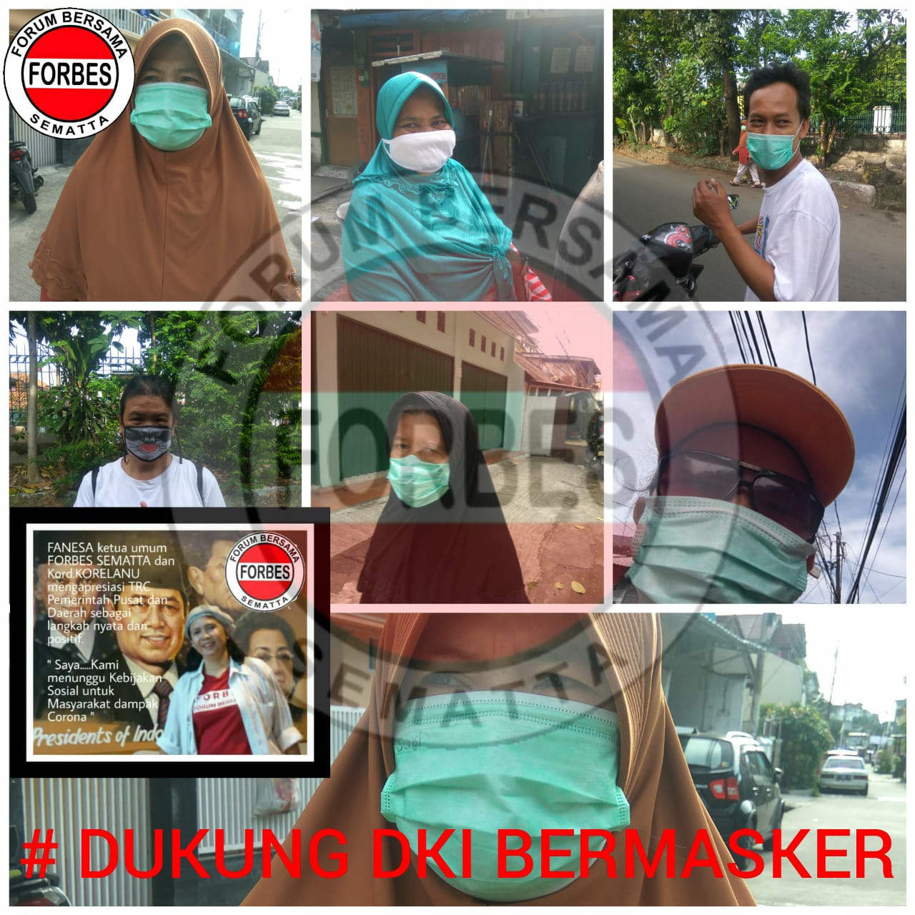 Menurut Kordinator Koalisi Relawan Nusantara (KORELANU), sekaligus Ketua Umum FORBES SEMATTA Fanesa Sajat mengatakan, bahwa penggunaan masker (penutup) wajah dinilai efektif untuk menahan tetesan (droplet) sebagai rute transmisi utama dari coronavirus. “Kami mengajak masyarakat untuk aware (sadar ) terhadap kondisi sekarang, setidaknya melakukan pencegahan dan mengikuti himbauan dari Pemerintah dengan kesadaran yang tinggi pentingnya menggunakan masker untuk melindungi diri sendiri dan juga melindungi orang lain,” ucapnya di Jakarta di sela sela pembagian masker kepada warga, Rabu, (8/4/20).