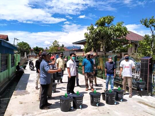 Kegiatan tersebut dilaksanakan tepatnya hari ini, Jumat (17/04/20), yang dibagikan diantaranya, ember yang telah dipasang kran dilengkapi dengan sabun cair untuk pencuci tangan yang di bagi setiap rumah.