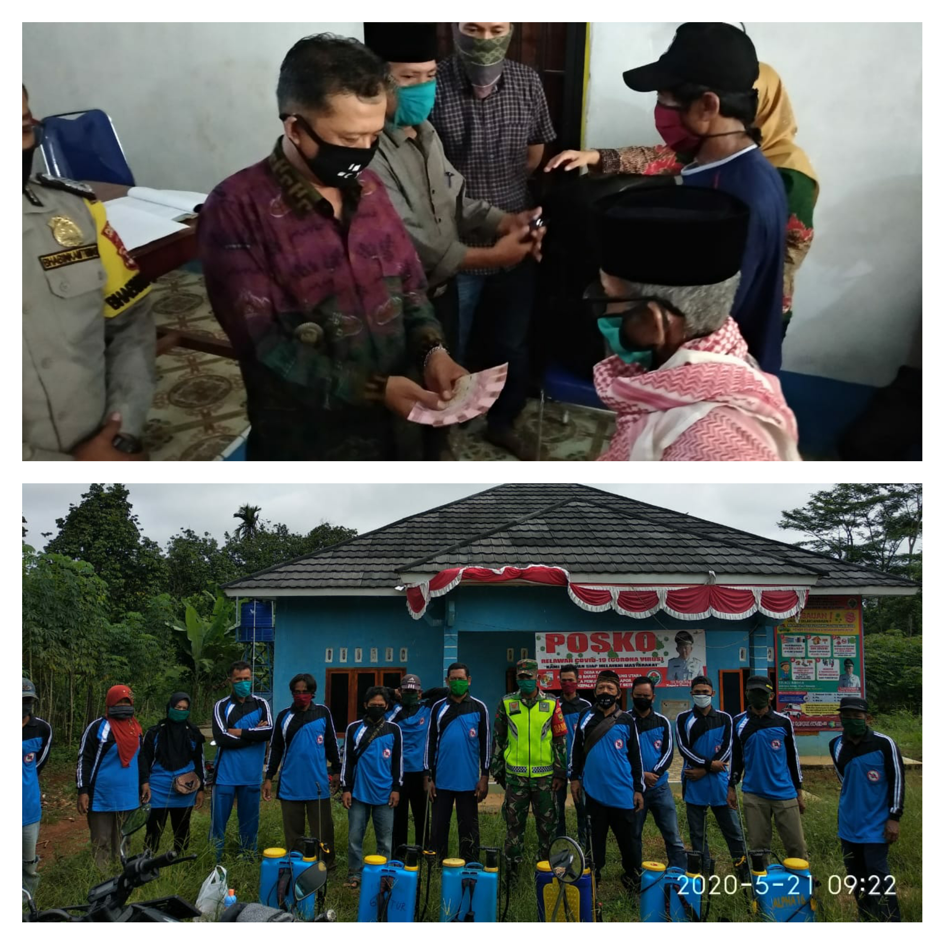 Herman (Kades) Serahkan Bantuan Lansung Tunai (BLT) Sekaligus Penyemprotan Antisipasi Covid 19