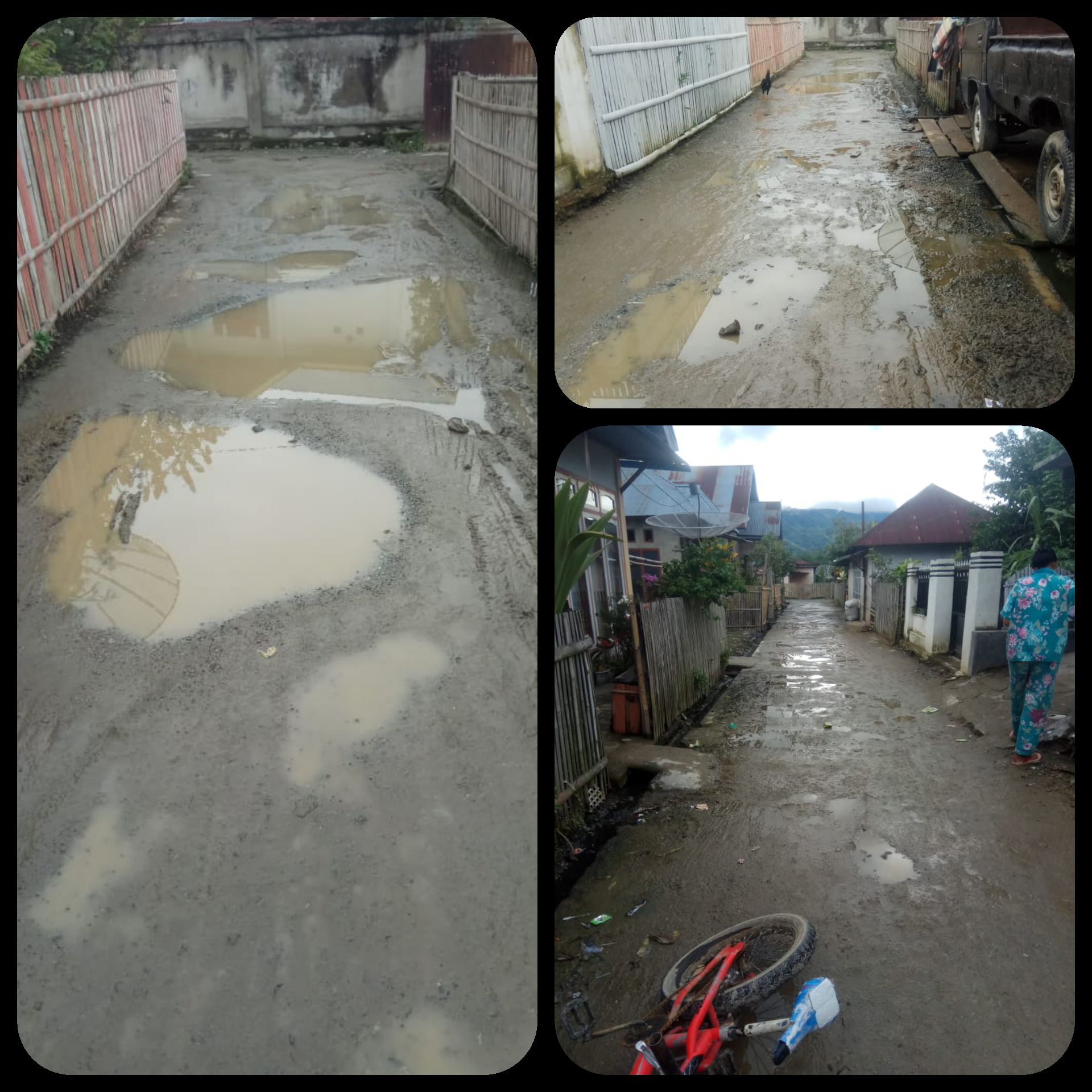 Semestinya sebagai Pemimpin harus bijak menentukan pilihan mana yang harus diprioritaskan terlebih dahulu. dengan suatu alasan jalan yang ada dalam suatu desa kondisinya sangat memprihatinkan dan terkesan kumuh.