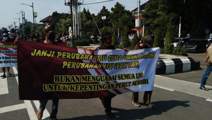 Pemalang, – Sejumlah Puluhan aktivis yang tergabung dalam Laskar Patih Sampun telah berunjuk rasa di depan Pendopo Kabupaten Pemalang pada hari Senin (07/06/2021).