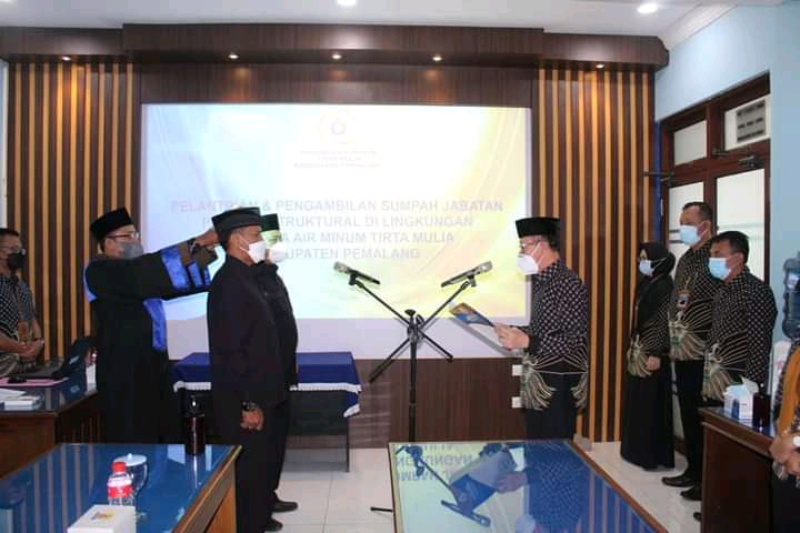 Pemalang Jateng, – Dalam rangka meningkatkan profesionalisme kinerja dan pelayanan kepada masyarakat, Dirut PDAM Tirta Mulia pada Hari Kamis (7/10/2021) melaksanakan pelantikan dan pengambilan sumpah Jabatan Pejabat struktural di Lingkungan Perumda Air Minum Tirta Mulia Kabupaten Pemalang(PDAM) Jajaran Direksi,Pejabat Struktural Dan Staf Ahli Perumda Air Minum Tirta Mulia Kabupaten Pemalang.