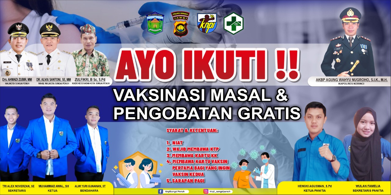 Sungai Penuh, – Ketua KNPI Kota Sungai Penuh, Muhammad Awal secara khusus menegaskan keseriusan Pemuda Kota Sungai Penuh ingin mempercepat capaian Target vaksinasi.