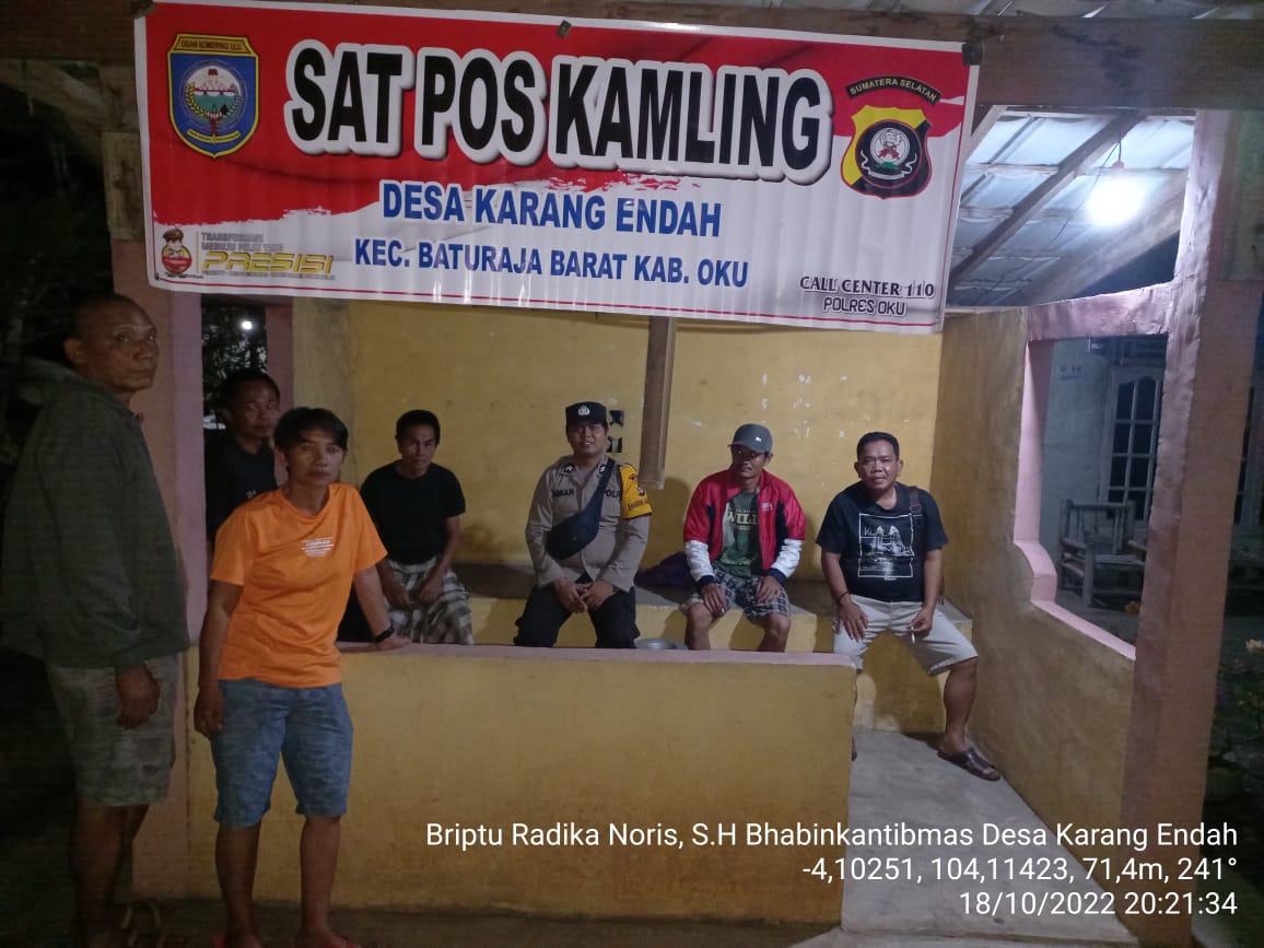 OKU SUMSEL, – Pada hari Selasa tanggal 18 Oktober 2022 sekira jam 21.00 Wib telah dilaksanakan Kegiatan Safari pos siskamling di Desa Karang Endah Kecamatan Baturaja Barat