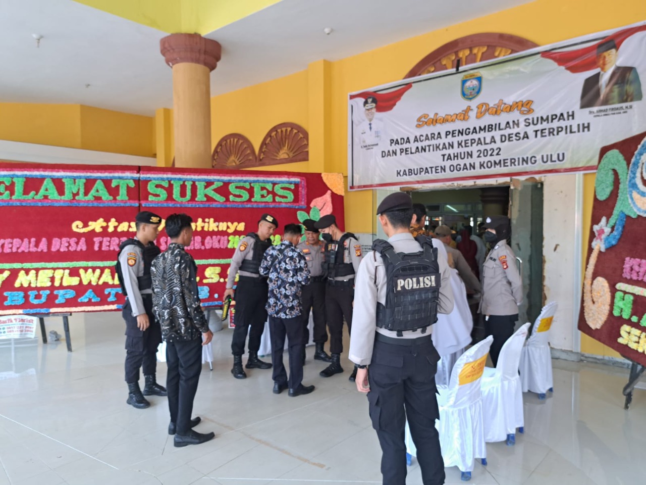 OKU SUMSEL, – Polres Oku Polda Sumsel menerjunkan 120 personel gabungan guna mengamankan pelantikan kepala desa (kades) terpilih di Gedung Kesenian Baturaja , Jum’at (16/12/2022).