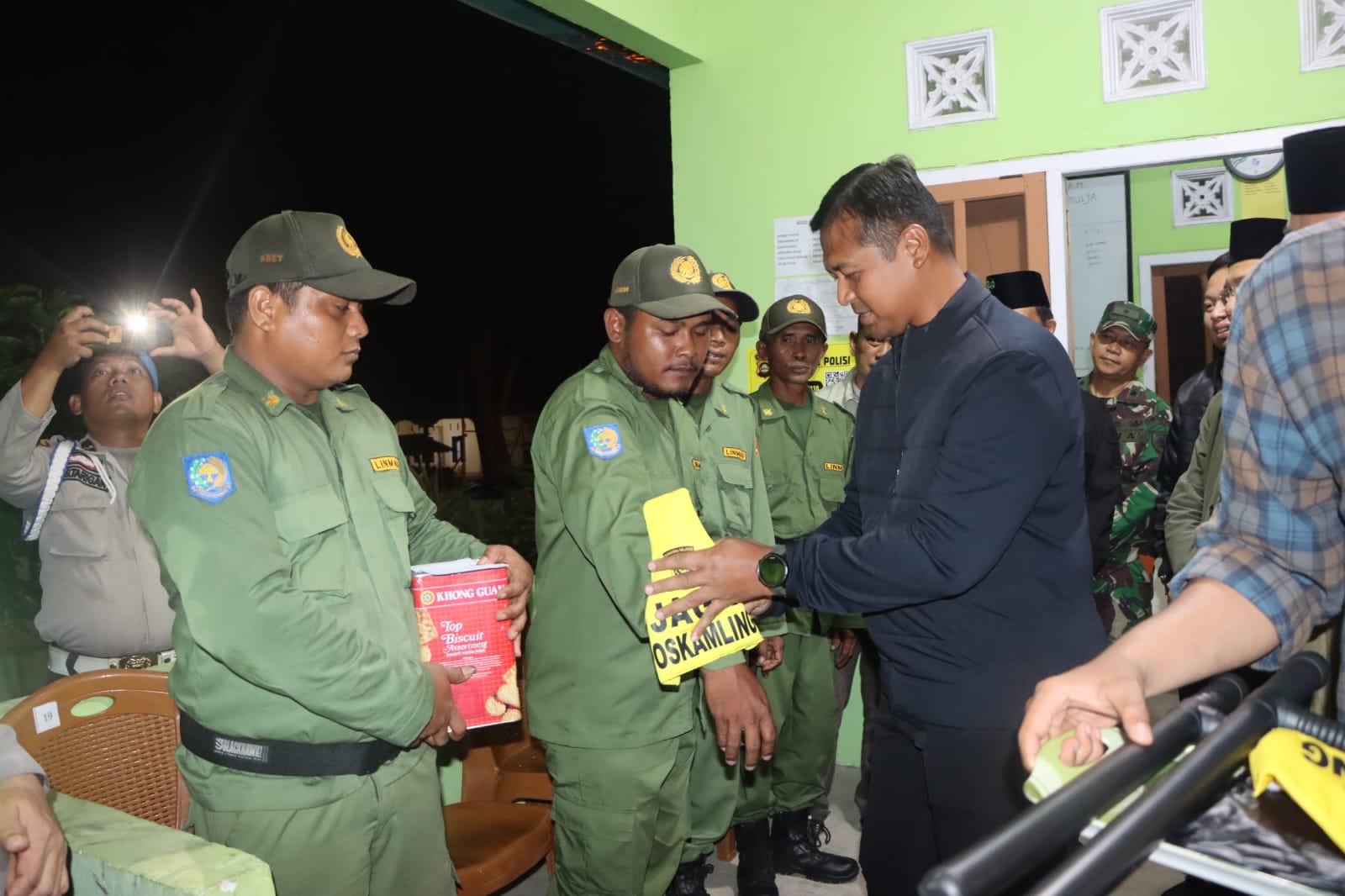 Kapolres juga memberikan bantuan berupa alat yang di perlukan untuk berkeliling jaga malam.