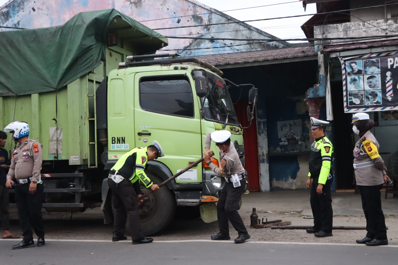 OKU SUMSEL, – pada Hari Selasa Tanggal 27 Desember 2022 Sekira Pukul 18.00 wib Personil satlantas Melaksanakan Patroli dan menemukan kendaraan Truck yg Mogok di Jalur lintas tengah sumatera Tepat nya Di jembatan Ogan 2 Kel.batu kuning kec baturaja barat kendaraan Truck tersebut mengalami Pecah ban dan Habis Prodo sehingga Kendaraan tersebut Terparkir di badan jalan sehingga Dapat menjadi penyebab penyempitan jalan Dan macet serta menjadi potensi Terjadi nya laka lantas.