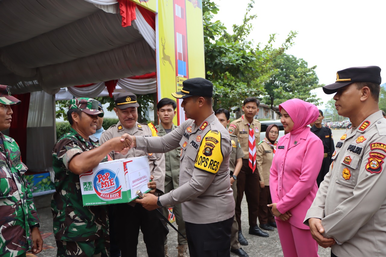 Dan sebagai wujud motivasi dan penyemangat untuk personel dalam menjalankan tugas, kami berikan beberapa bingkisan berupa Snack dan Minuman bagi anggota yang sedang melaksanakan pengamanan semoga bingkisan bisa bermanfaat bagi anggota yang melaksanakan pengamanan,’’ pungkas Kapolres Oku.