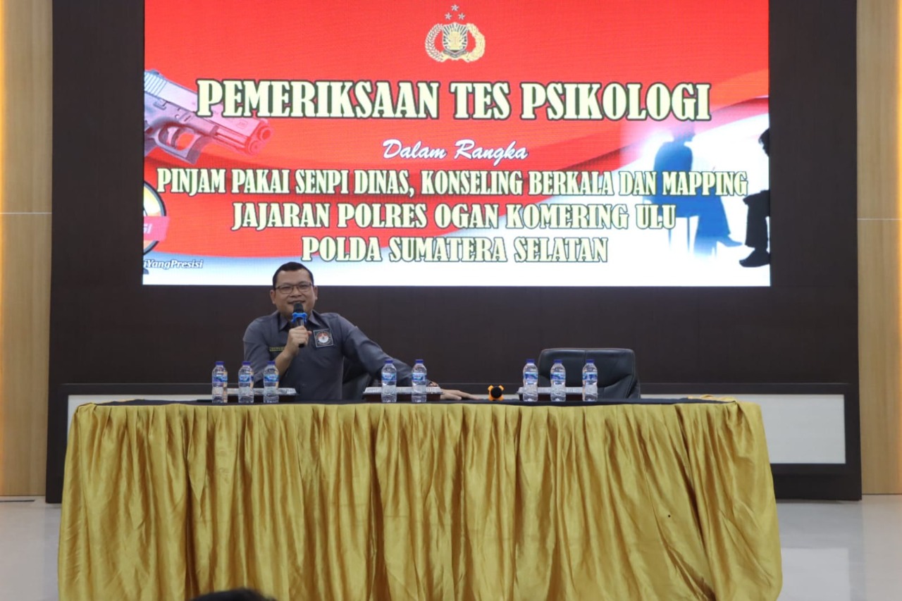 OKU SUMSEL, – Biro Sumber Daya Manusia (SDM) Polda Sumsel yang dipimpin oleh Kabag Psikologi Biro SDM Polda Sumsel KOMPOL SUPARYONO, M.Psi., Psikolog bersama tim, melaksanakan Pelayanan Psikologi terpadu kolektif (Pembekalan Kesehatan Mental Psikologis, Mapping Psikologis, Konseling Anggota dan Tes Psikologis) terhadap calon pemegang Senpi Dinas Polri pada lingkungan Polres Oku.