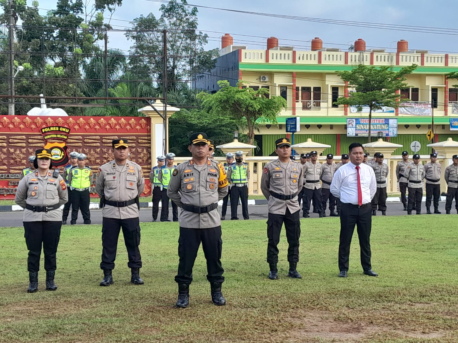 Dalam kegiatan Upacara Hari Kesadaran Nasional yang dipimpin oleh Kapolda Sumsel selaku Inspektur Upacara IRJEN POL A. RACHMAD WIBOWO, S.I.K, dihadiri oleh Kapolres OKU, AKBP ARIF HARSONO, S.I.K., MH., Wakapolres OKU, KOMPOL FARIDA APRILLAH, S.H., Pju Polres OKU, Para Kapolsek jajaran dan Personil Polres OKU lainnya.