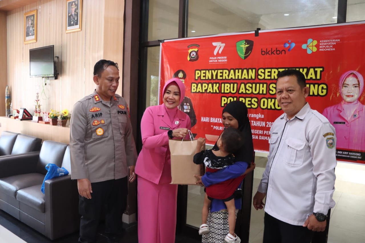 Penyerahan Sertifikat Bapak Ibu Asuh Stunting Polres OKU Dalam Rangka HUT Bhayangkara Ke 77