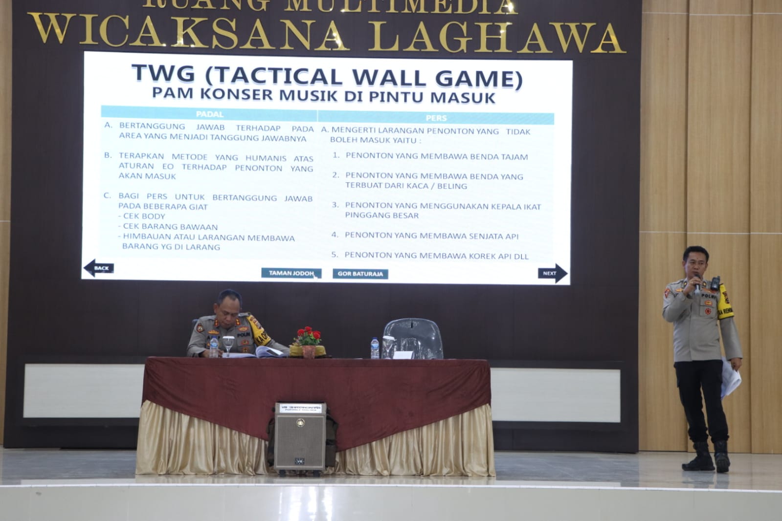 OKU SUMSEL, – Polres Oku menggelar kegiatan TWG (Tactical Wall Game ) jelang pengamanan Konser Musik yang akan berlangsung di wilayah Kabupaten Oku.
