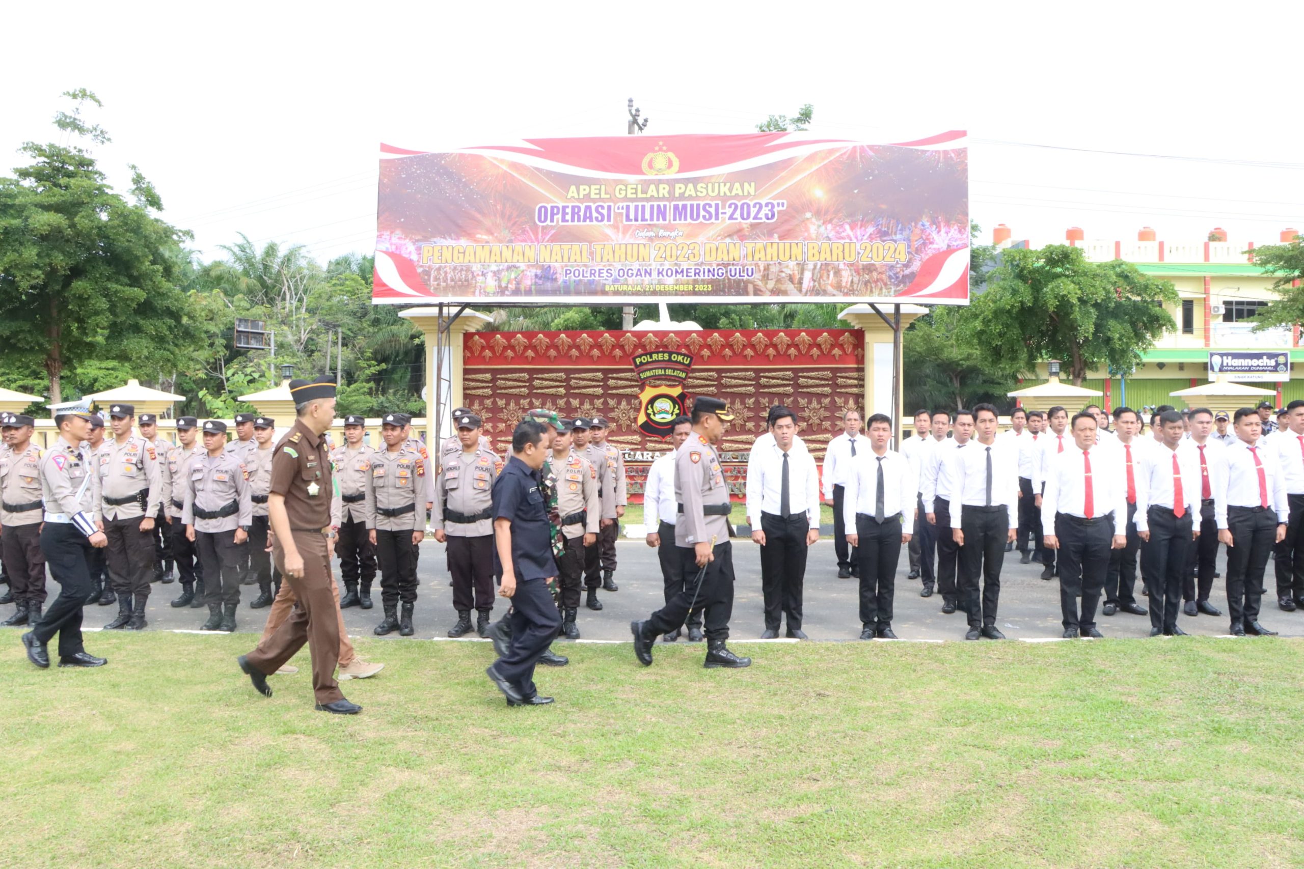 BATURAJA, – Kepolisian Resor Ogan Komering Ulu melaksanakan apel gelar pasukan Operasi Lilin Musi 2023 dalam rangka pengamanan Natal dan tahun baru (Nataru), di halaman Mapolres Oku, Kamis (21/12/2023).