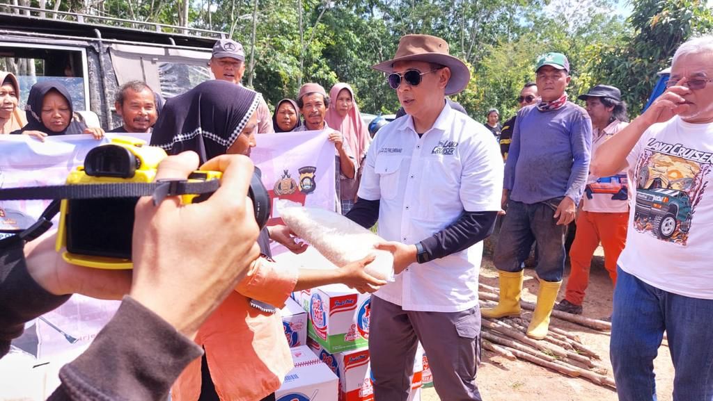 “Polda Sumsel sengaja menggandeng Komunitas Jeep 4×4 untuk memudahkan transportasi menuju lokasi. Kami berharap bantuan 100 paket sembako ini bermanfaat dan bisa meringankan beban bagi masyarakat,” ujar Rachmad.
