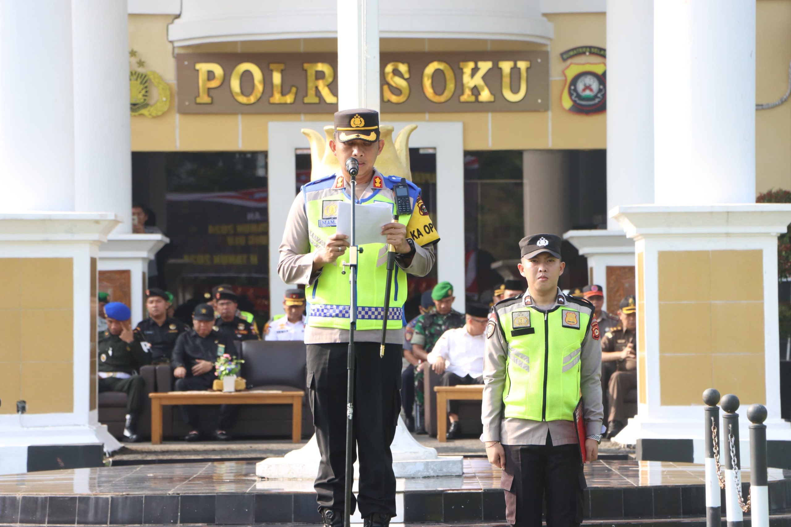 “ Kapolres OKU. AKBP. Imam Zamroni, S.I.K., M.H., dalam amanatnya membacakan arahan dari Kapolri Jenderal Listyo Sigit Prabowo bahwa Sebagai komitmen dalam rangka pengamanan mudik dan perayaan hari raya Idul Fitri 1445 Hijriyah. Berdasarkan survei indikator kepuasan masyarakat atas penyelenggaraan dan penanganan arus mudik tahun 2023 mencapai 89,5% atau meningkat 15,7% dibanding Tahun 2022 hal ini merupakan wujud apresiasi masyarakat atas kinerja kita bersama yang harus dipertahankan dan ditingkatkan dalam pengamanan arus mudik dan arus balik tahun 2024.