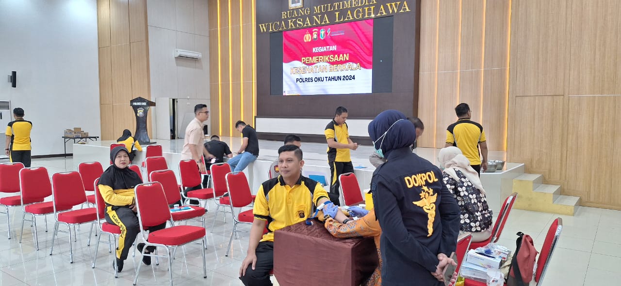 Pemeriksaan kesehatan ini dilaksanakan secara rutin, minimal setahun sekali secara bergantian. Program rikkes ini merupakan bentuk perawatan kesehatan terhadap personel Polri dan ASN Polri,” Ujar Kapolres OKU.