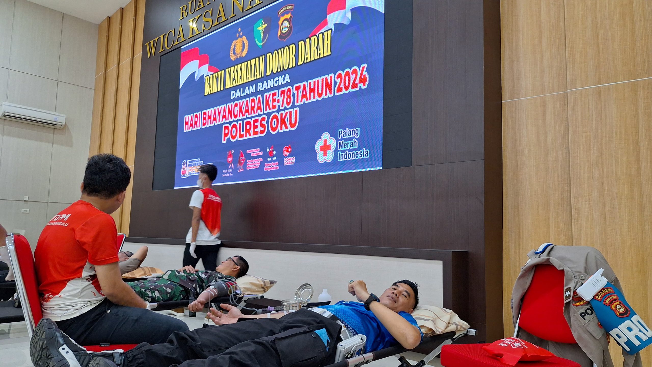 Kegiatan tersebut turut bersinergi dengan Palang Merah Indonesia (PMI) Kabupaten Oku dan turut melibatkan lebih kurang 71 orang pendonor yang merupakan anggota Polri, dan Bhayangari serta TNI.