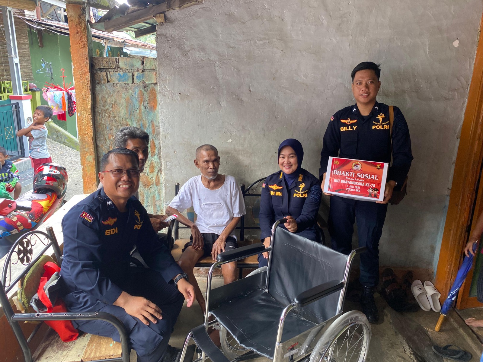 Polres OKU Berikan Bantuan Kursi Roda Alat Bantu Disabilitas