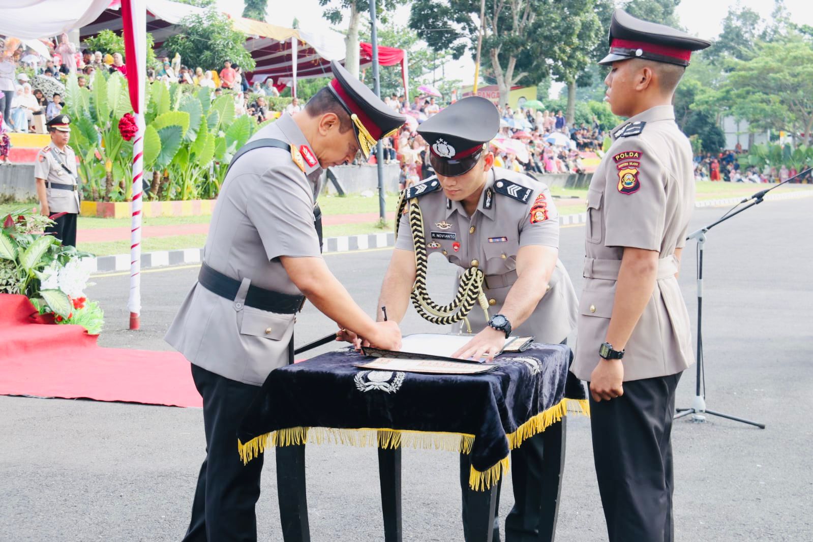 Pelantikan siswa Diktuba Polri gelombang I TA 2024 turut dihadiri oleh Ketua Bhayangkari Daerah Sumsel dan Staff, para Pejabat Utama (PJU) Polda Sumsel, para Kapolres/Tabes jajaran, para orang tua dan wali siswa, serta tamu undangan lainnya. (Afz)