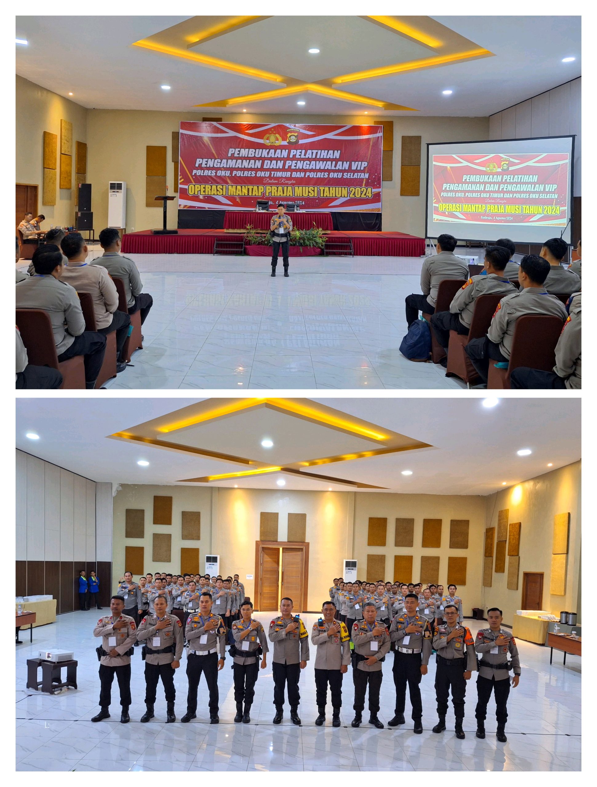 OKU SUMSEL, gerhanaonline.net – Dalam Rangka Operasi Mantap Praja Musi 2024, Polres Oku gelar Pelatihan Pengamanan Dan Pengawalan VIP Dalam Rangka Operasi Mantap Praja Musi 2024 yang berlangsung di Ballroom Hotel BIL Baturaja. Selasa (06/08/2024) sekira pukul. 09.00 Wib.