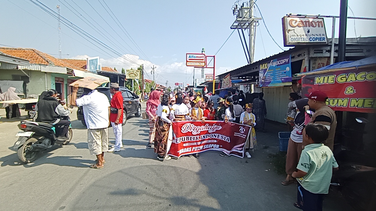 Warga masyarakat Dukuh Wadas Putih Silopor, RW 07, Kelurahan Sugihwaras, Kecamatan Pemalang, Kabupaten Pemalang, Jawa Tengah, (25/8/2024), menggelar kegiatan Karnaval.