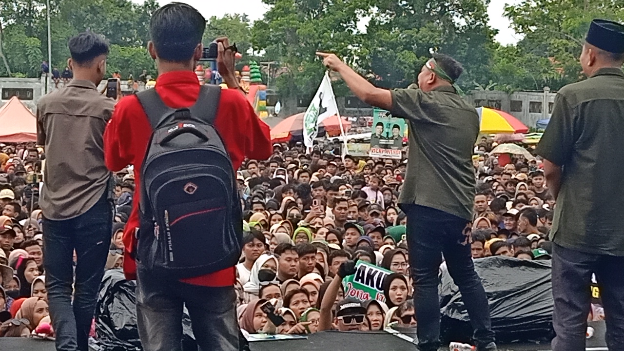 “Saya Vicky Prasetyo dan Muhammad Suwendi bertekad akan membawa perubahan dalam segala hal. Pendidikan Gratis, Tenaga Kesehatan yang lebih baik, Jalanan juga dipastikan kondisinya baik pula, harga bahan kebutuhan pokok juga tidak menjadi beban. Bantuan Sosial pun akan saya pastikan bisa dirasakan oleh semua warga yang mutlak dan layak mendapatkan nya.”, ungkap Vicky Prasetyo penuh semangat dalam menyampaikan orasinya.