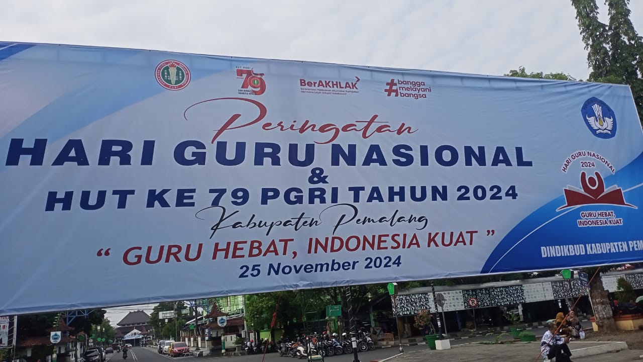 Untuk itulah, Pemerintah Daerah Kabupaten Pemalang melakukan Kegiatan Upacara Bendera untuk memperingati Hari Guru Nasional dan HUT Ke 79 PGRI Tahun 2024, di Alun Alun pusat kota.