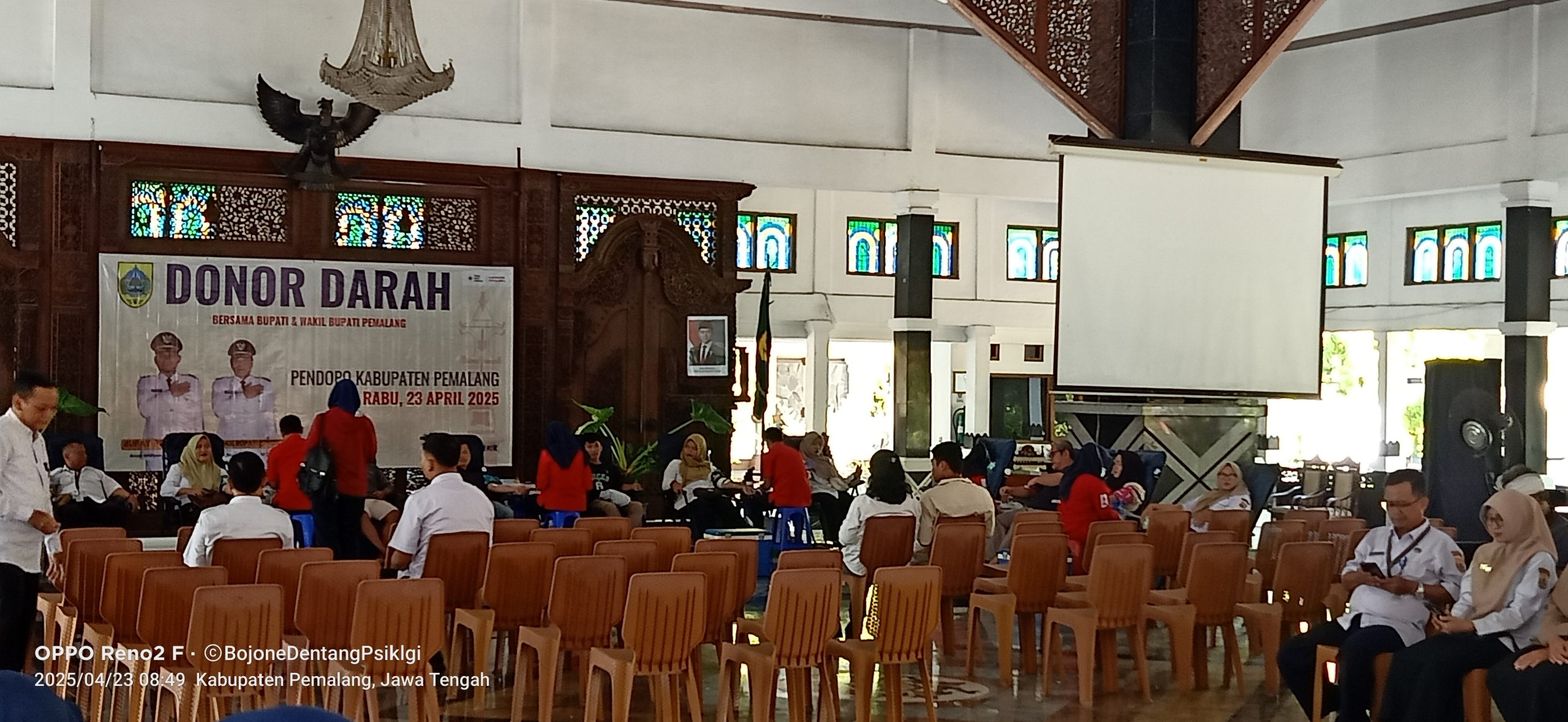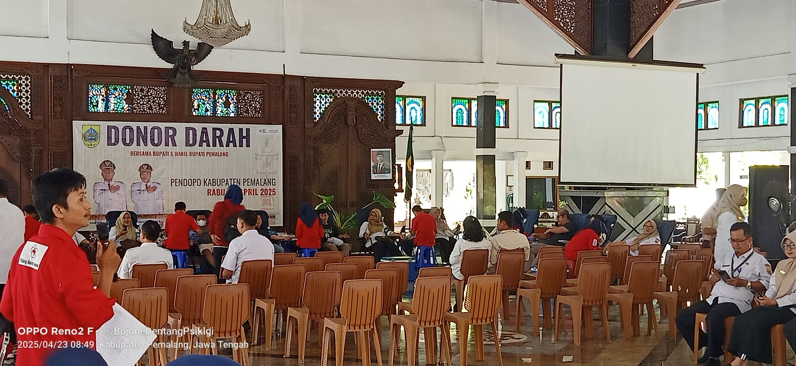 Pemalang – Semboyan “Setetes Darah Anda, Bisa Menyelamatkan Orang Lain ” nampaknya bukan kaleng kalen bagi Palang Merah Indonesia Cabang Pemalang, Jawa Tengah. Hal tersebut dibuktikan dalam kegiatan bertajuk “Donor Darah bersama Bupati dan Wakil Bupati Pemalang” yang dilaksanakan di Pendopo Kabupaten Pemalang, Jawa Tengah, (23/4/2025). Kegiatan sosial kemanusiaan tersebut tak ayal menjadi daya tarik tersendiri bagi ratusan warga masyarakat lintas generasi untuk datang dan mendonorkan darahnya.