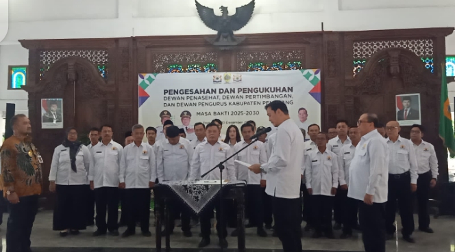 GERHANA ONLINE, Pemalang – Pengurus Kamar Dagang dan Industri (Kadin) Kabupaten Pemalang masa bakti 2025-2030 resmi dikukuhkan oleh Ketua Umum Kadin Provinsi Jawa Tengah Harry Nuryanto Soediro yang disaksikan oleh Bupati dan Wakil Bupati Pemalang Anom Widiyantoro dan Nurkholes.